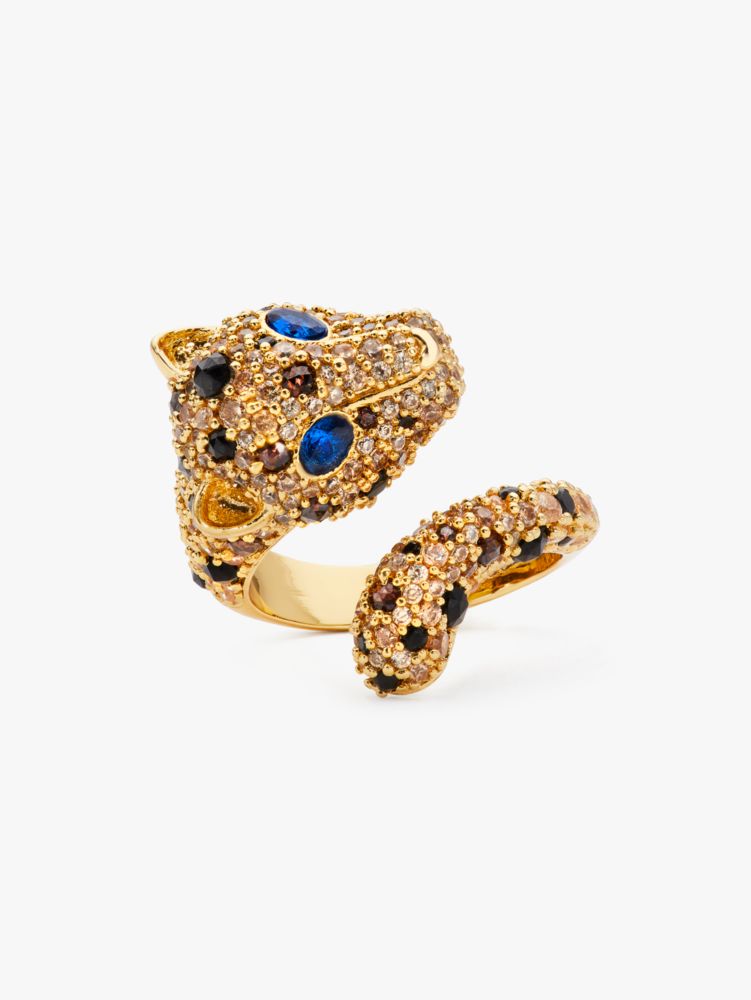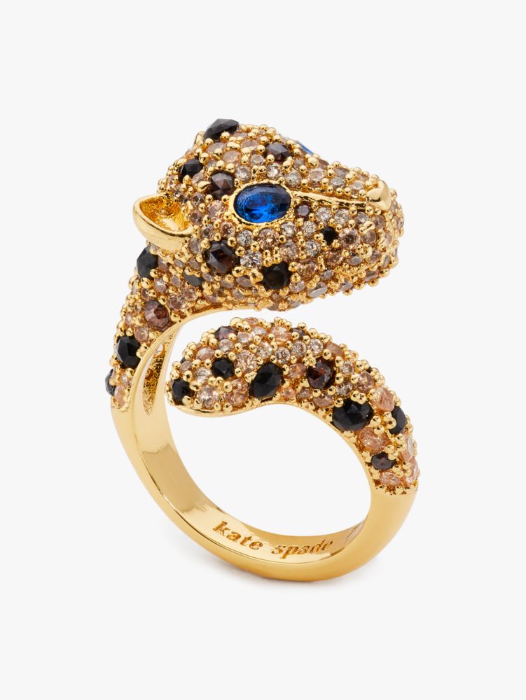 Featuring a crystal-encrusted leopard with striking jewel eyes and spots, this striking wrap ring will have you feeling fierce. (Rawr.)