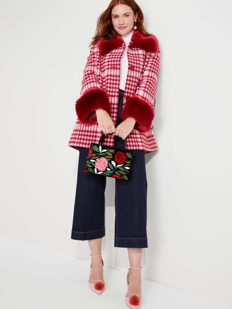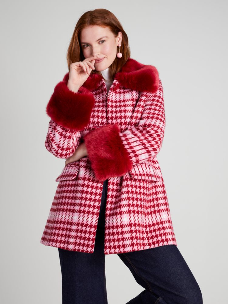 No fall closet is complete without plaid. See: our Anita coat, crafted of a houndstooth plaid wool blend and finished with glamorous faux-fur trim.
