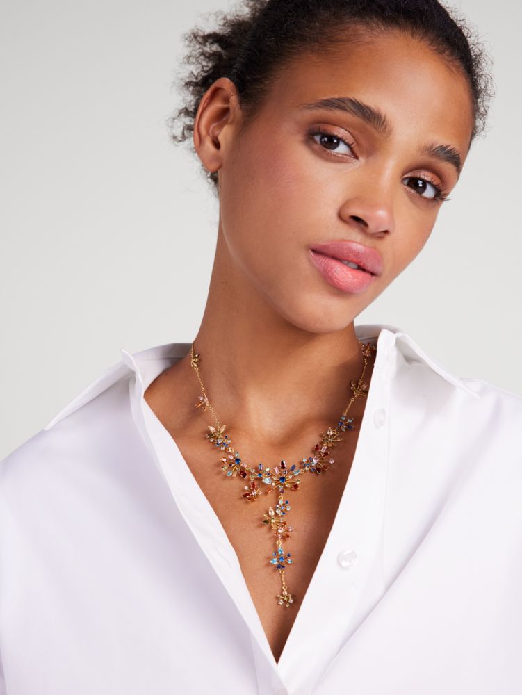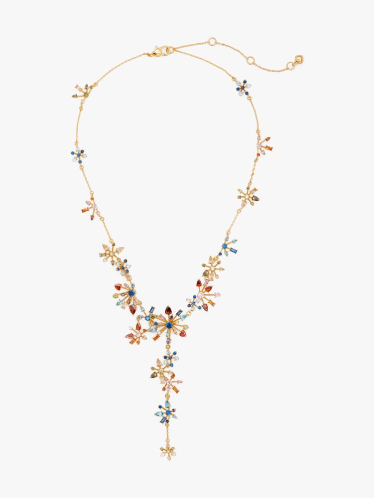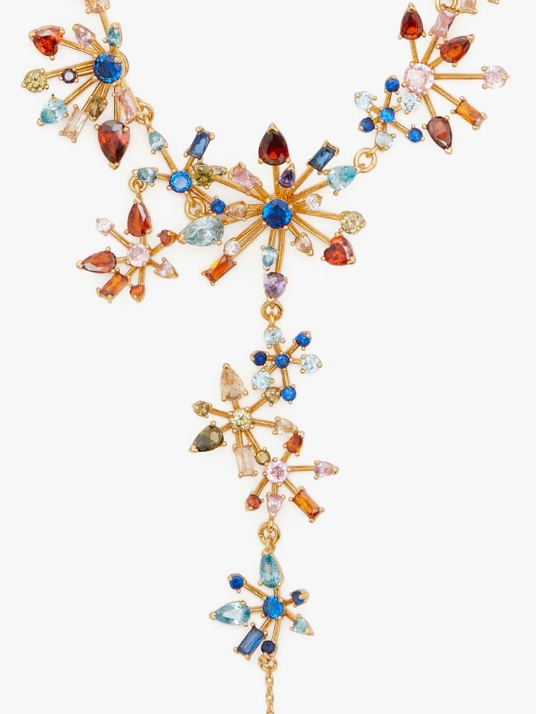 Happy Fourth! Give your look some fireworks of its own with this statement necklace boasting colorful bursts that will sparkle and shine alongside those in the sky...