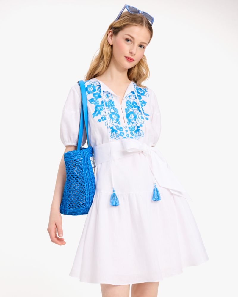 This breezy linen shirtdress is embroidered along the front for a touch of floral flourish.