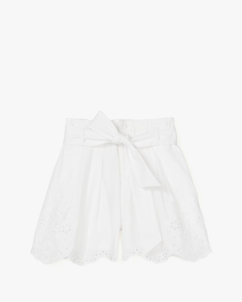 It's all in the details—eyelet embroidery gives these 100% cotton tiered shorts a touch of florals.
