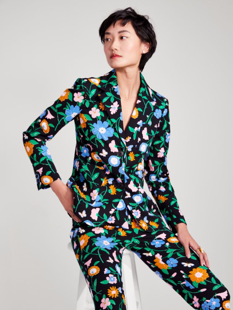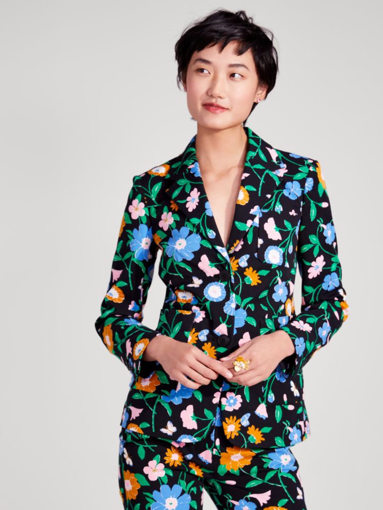 of course, black blazers are a forever classic. but why not have a little more fun for spring? read: our floral garden blazer, cut from stretch-cotton twill boasting loads of new blooms.