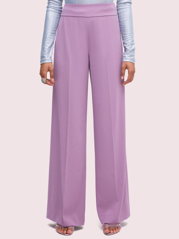 these pretty lilac crepe trousers stand out but also act as a neutral against blouses and tees. we stayed true to this fluid pant's menswear roots with a set-on waistband and creased legs.