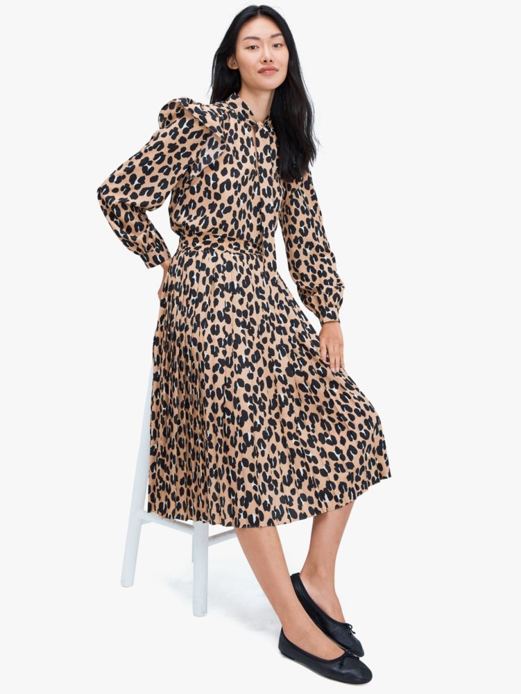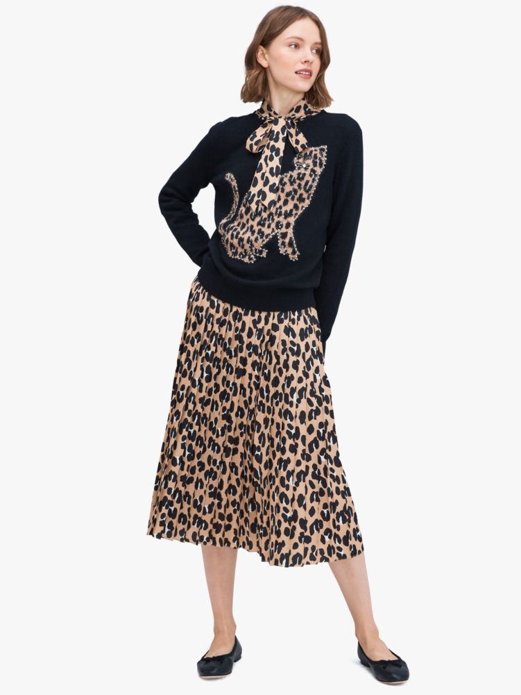 Kate Spade,Forest Feline Tie-neck Top,