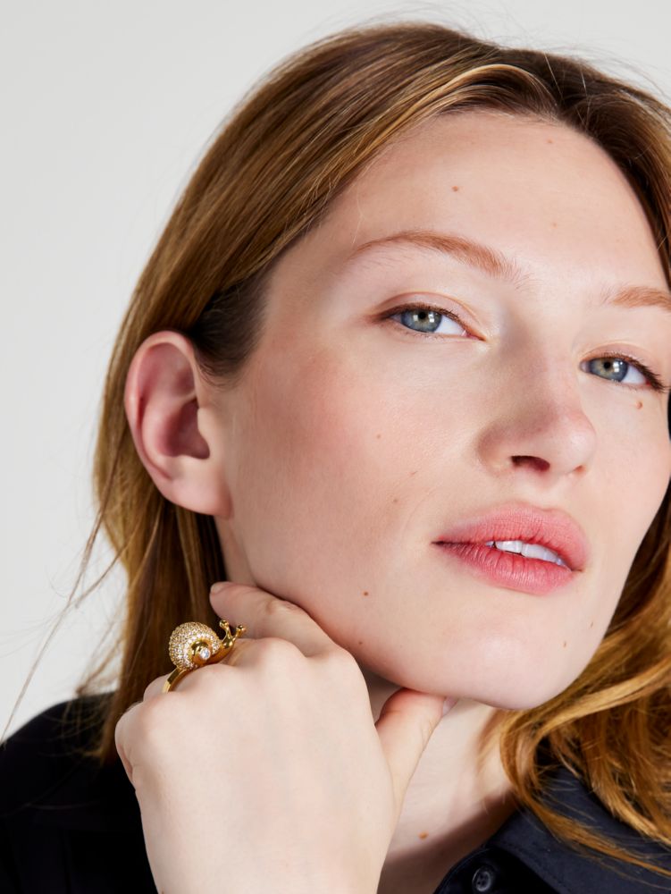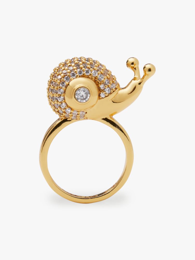 Finish your 'fit with a whimsical twist in this cocktail ring, featuring one cute little critter: a sparkly snail!