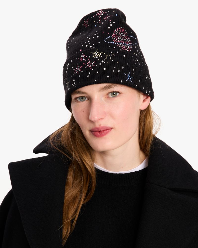 Turn to the stars for style inspiration! Our Galaxy beanie is embellished with sparkling celestial accents.