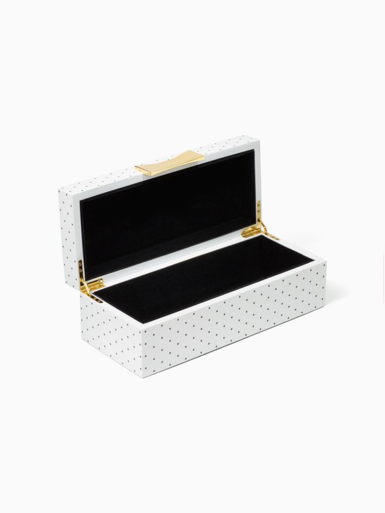 because you can't always wear all your treasured jewelry at once (we've tried!), this bright lacquered box with a flocked interior is perfect for your prettiest things' off-days. we also like it to store bits and bobs, love letters and sweet secrets.