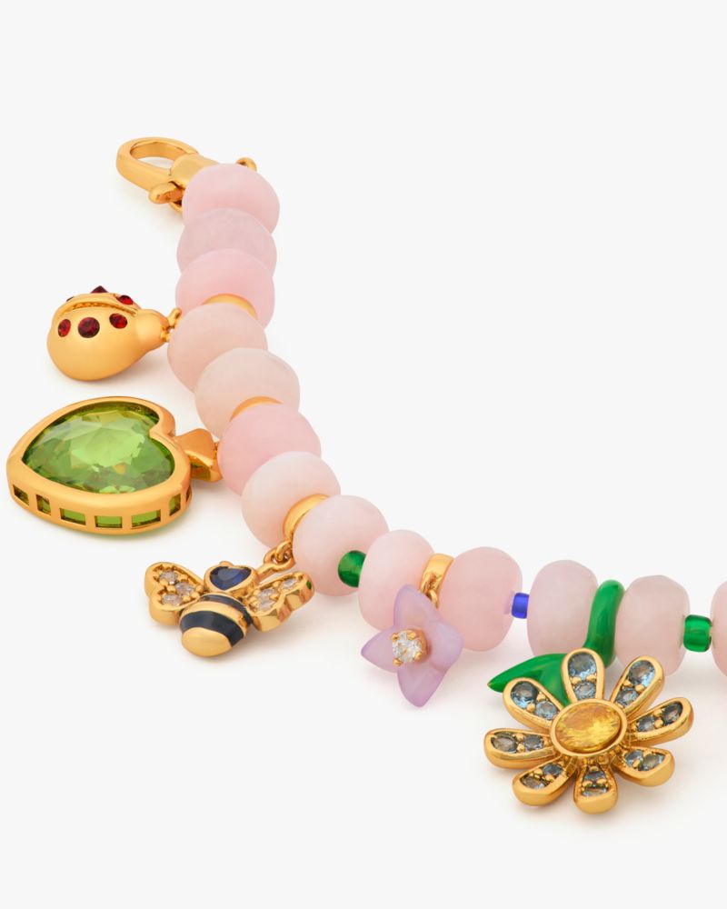 Kate Spade,Garden Friends Beaded Charm Bracelet,Cubic Zirconia,Crystal,Acetate,Jade,Glass,Enamel,3D Embellishment,Floral E...,