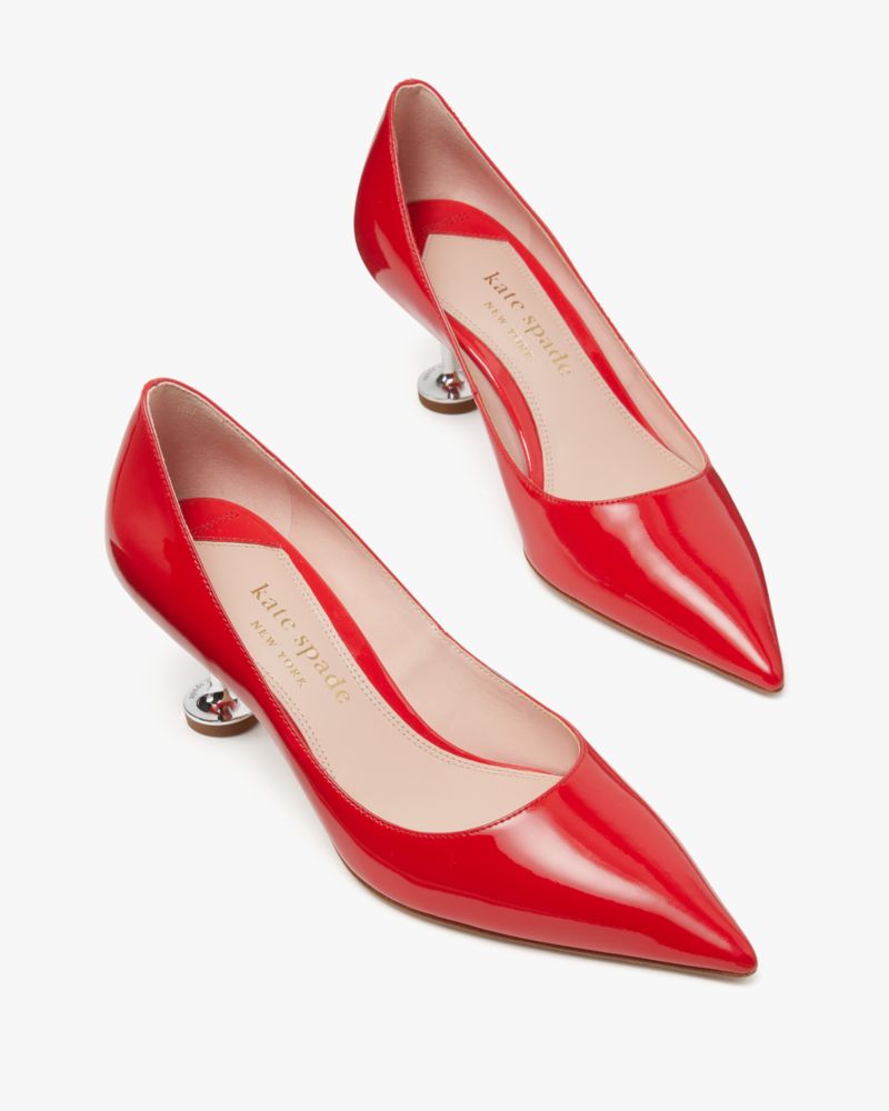 Garnish your look with these high-shine pumps made from patent leather. They're finished with pointed toes and pyramid heels for a sleek look.