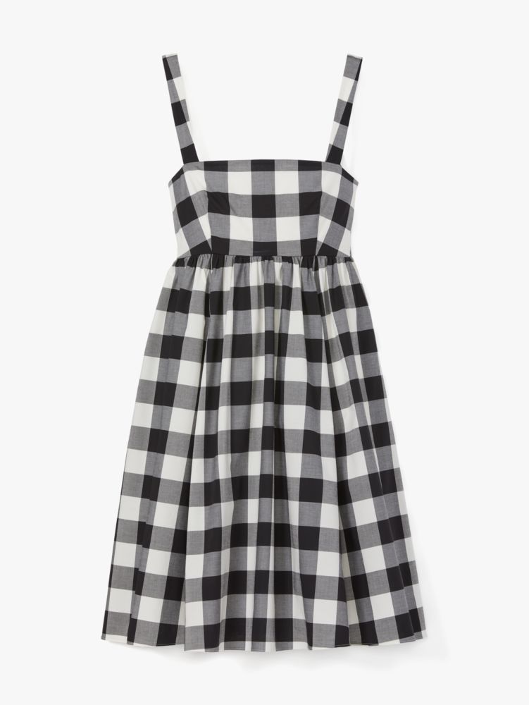 a little bit of gingham does a lot of good: styled with a square neck and A-line skirt, this dress will wow at all of your picnics and outdoor gatherings this summer.