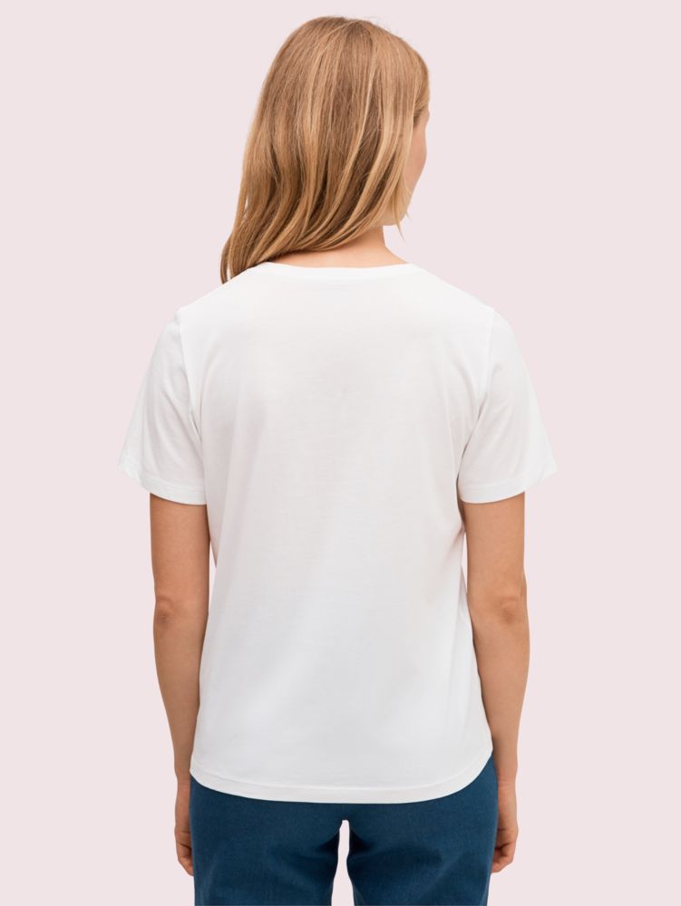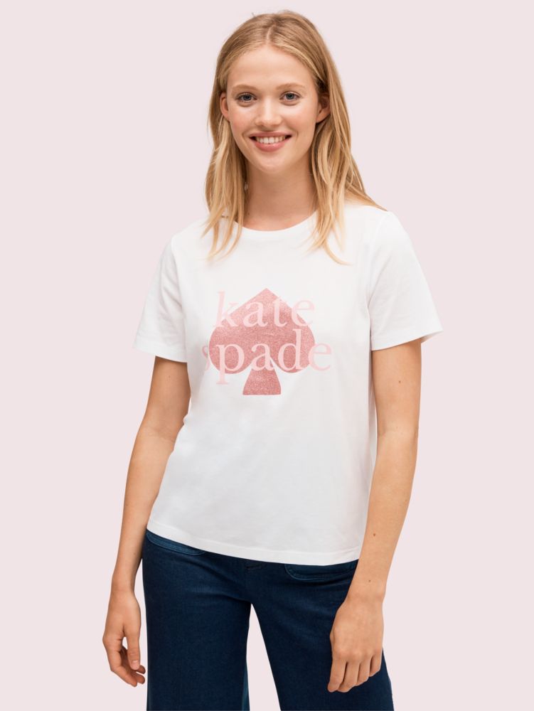 here's a graphic tee you'll want to lounge in every chance you get. the pima cotton is soft to touch and has a hint of stretch for comfort. at the front, a sparkly take on our moniker in pink glitter. we see you wearing it with your favorite leggings to morning pilates or jeans for weekend brunch.