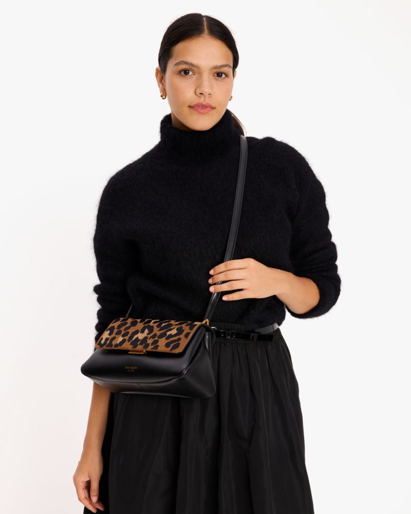 Kate Spade,Grace Leopard Suede Shoulder Bag,Leather,Suede,Shoulder Bag,Pattern,Metal,Logo,Adjustable,Day Party,
