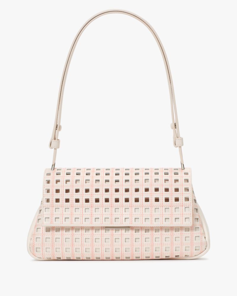 Kate Spade,Grace Perforated Convertible Shoulder Bag,Leather,Canvas,Lining Canvas,Shoulder Bag,Embossed,Logo,Foil,Adjustab...,Cream