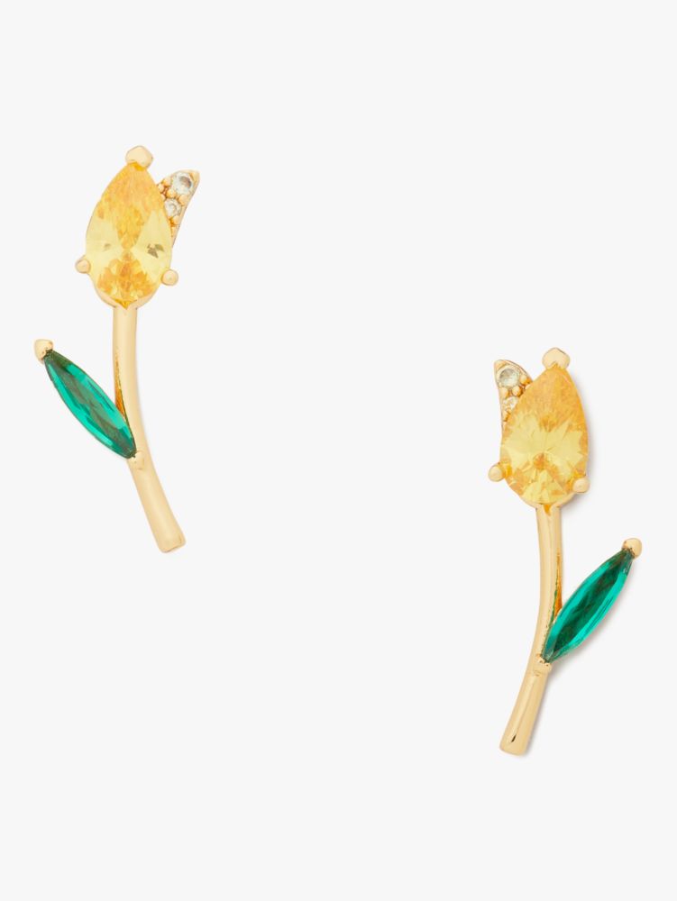 Made from shiny polished metal and colorful crystals, these tulip studs can be cherished for years to come...no watering needed.