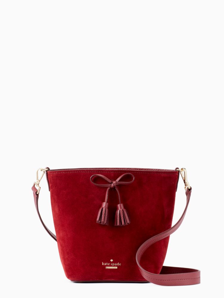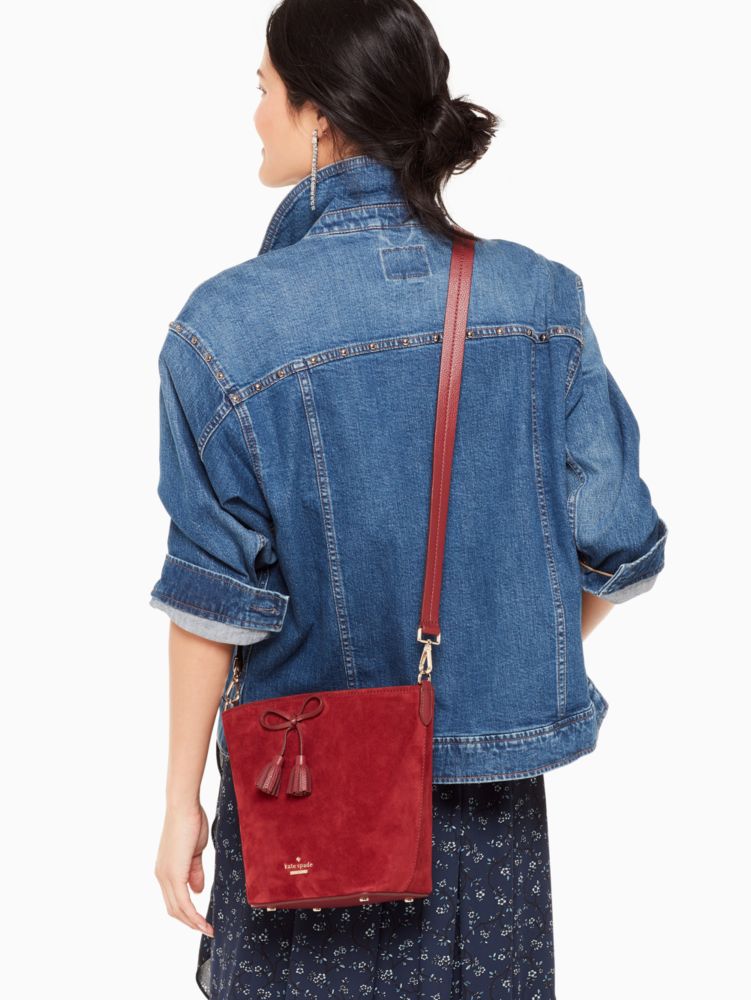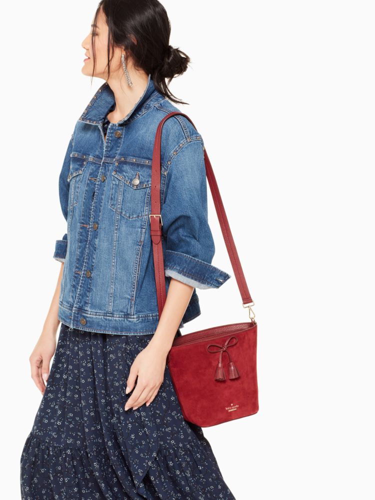with a long crossbody strap, bucket shape and tasseled accent, our hayes street suede vanessa feels quite modern, and its midsize shape makes it a perfect choice for every day.
