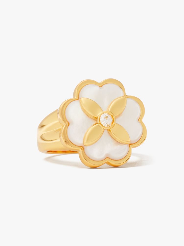 We reimagined our signature spades as an elegant floral motif. Here, we used it on this timeless signet ring with mother-of-pearl accents.