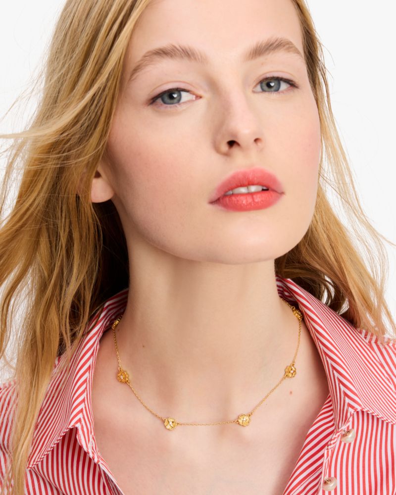 We've reimagined our signature spades as an elegant floral motif. Here, we used it on this timeless station necklace with sparkling accents.