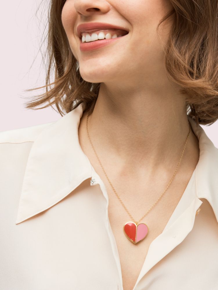 we've always adored hearts (you could probably tell). and we love how the classic shape looks in the faceted metal and colorblocked enamel on this pendant. it looks elegant on its own or paired with other necklaces.