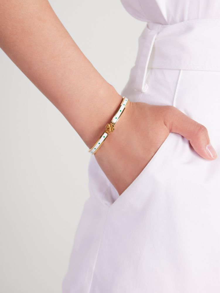 We filled our Heritage Spade Flower Collection with all of our favorite prints. Here, we've paired colorful madras enamel with shiny metal for a bangle unlike the rest.