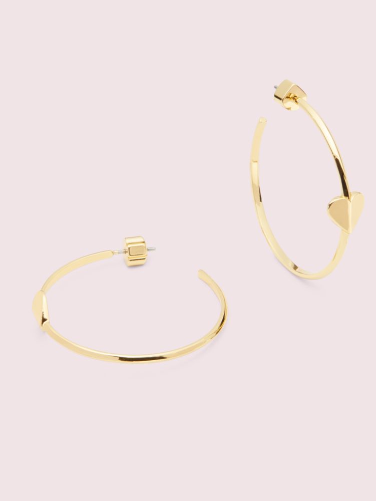 what's more classic than a pair of gold-tone metal hoops? our heritage spade ones punctuated with a tiny faceted heart. mix them with other studs or allow them to make a statement all on their own.