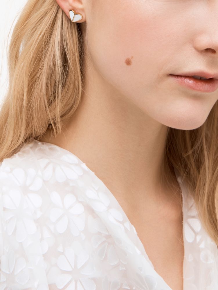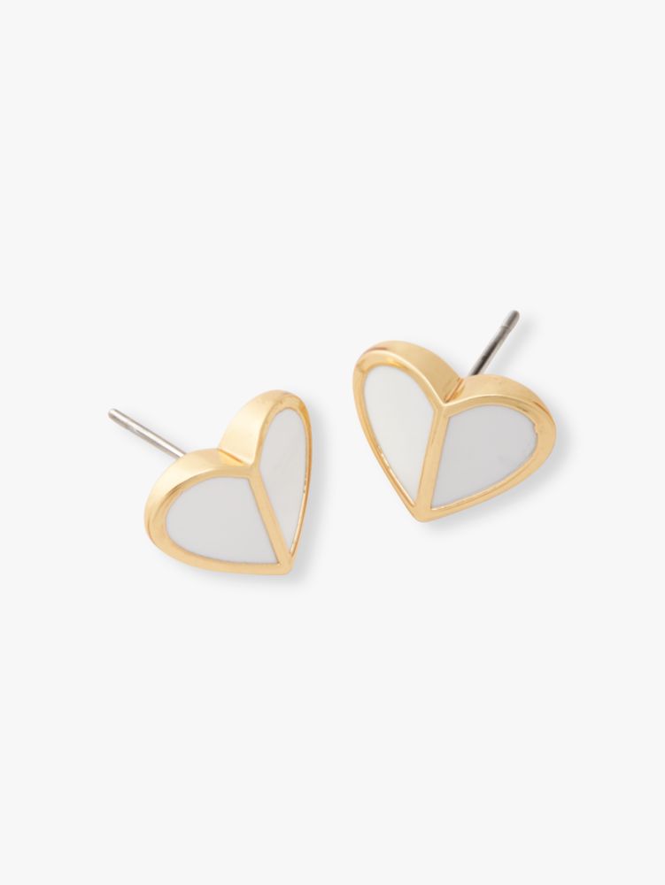these faceted heart earrings come in so many colors, there will be a pair to match any outfit. and did you notice the neat secret spade closure? sweep your hair up to show it off.