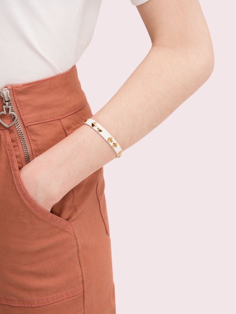 we think the faceted spade studs give this leather bracelet a bit more attitude. agree? wrap it around your wrist, add in other metallic bangles or a watch and wear it every day you feel like you need a little more oomph.