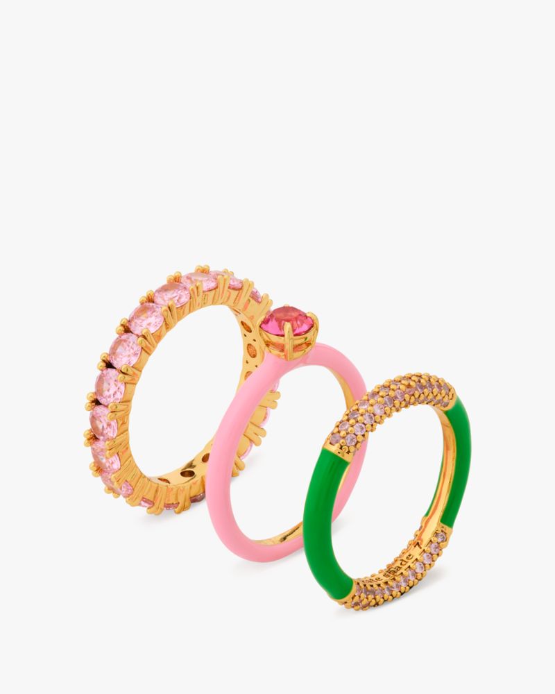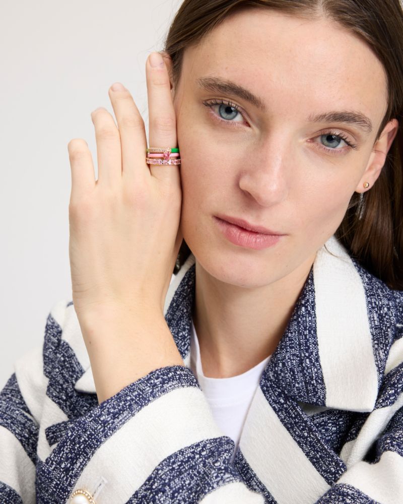 Kate Spade,Hint Of Shimmer Stacking Ring Set,Single Band,Enamel,Cubic Zirconia,Glass,Crystal,Gem Embellishment,Set,Stackab...,