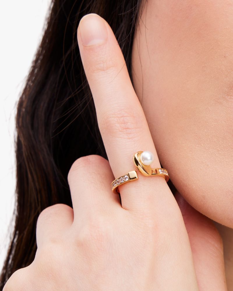 Kate Spade,Hole In One Club Ring,Single Band,Pearl,Rhinestones,Pave Embellishment,Pearl,Gold Plated,Yellow Gold Plated,Day...,