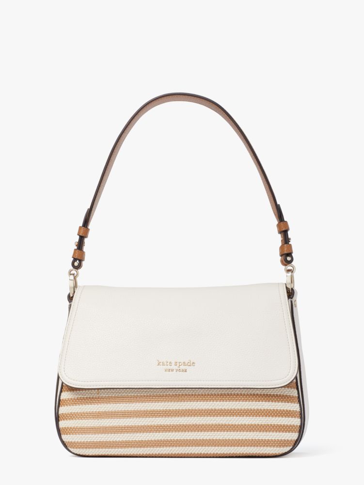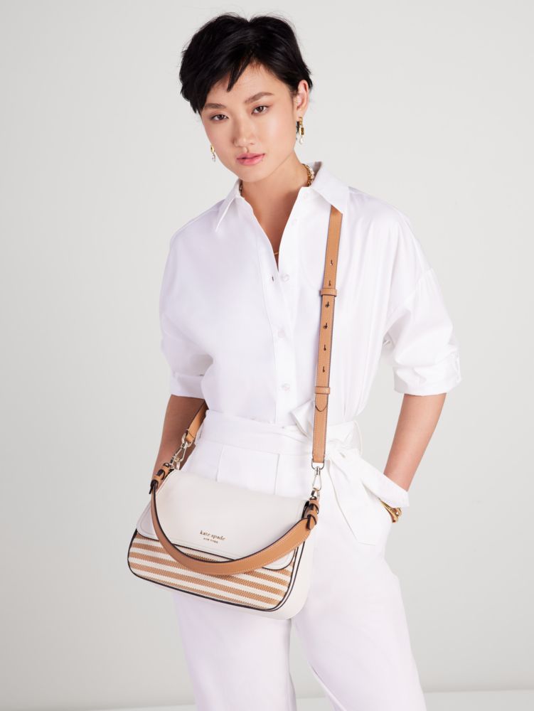Designed for a classic flap silhouette in striped fabric and pebbled leather, our Hudson Bag is sure to become an everyday favorite.