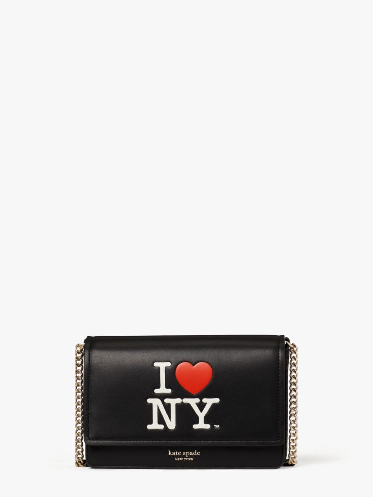 in 1977, milton glaser drew this iconic logo in the back of a yellow taxi, and today it represents travel across the entire empire state. this season, we're showing our hometown the love with this nappa leather chain wallet from our special capsule collection.