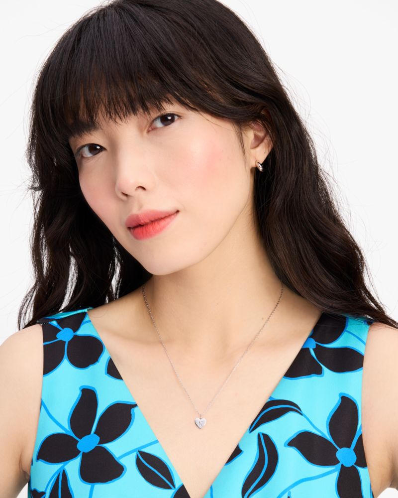 Initial here, please! Wear yours—or that of someone you want to keep close—around your neck with our new silver-tone 'E' pendant.