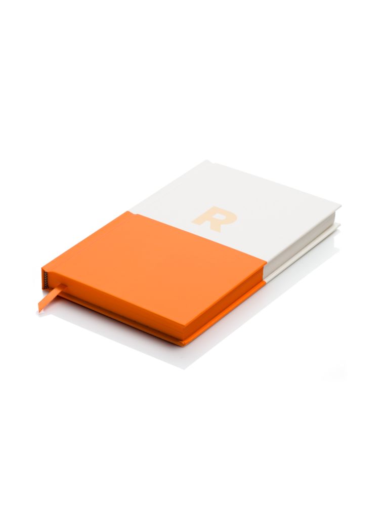 - paper wrapped cover with gold foil initial