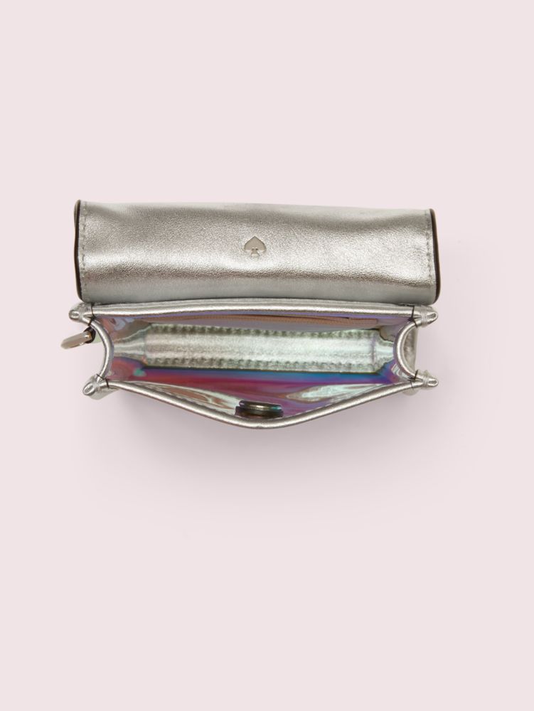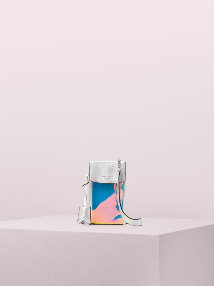 we finished the pvc on this flap phone crossbody with an iridescent coating that changes colors whenever you turn it. we're completely mesmerized every time we stare at it. also, it doubles as protection for your device against bumps and scratches and a stylish accessory for all your outfits.