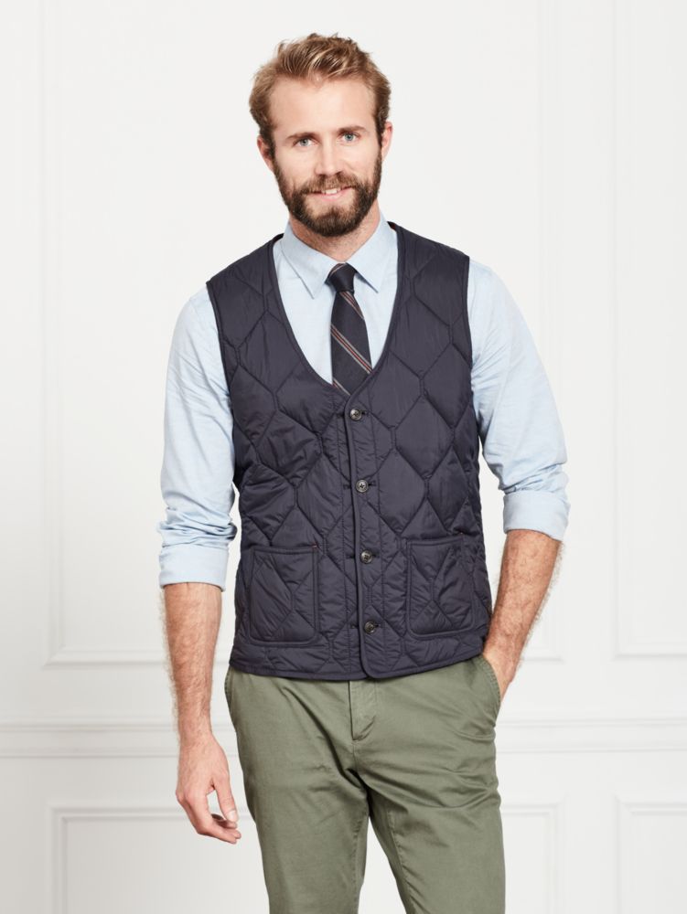 We wanted to make the most useful vest, so we made it water-resistant. Then we filled it with primaloft for maximum warmth and minimum weight. Perfect for layering. This Jack Spade vest can be worn alone or buttoned into any of our signature trenches, insuring it will take you through any season.