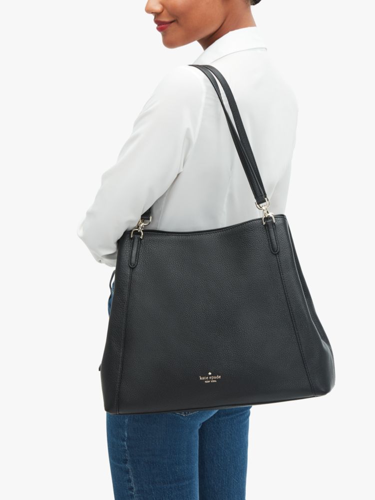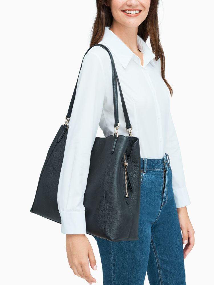 you know this tote holds your everyday stuff like a wallet, keys, phone, sunglasses. it also holds: two red lipsticks, $6 in change, 11 crumpled receipts, an avocado…