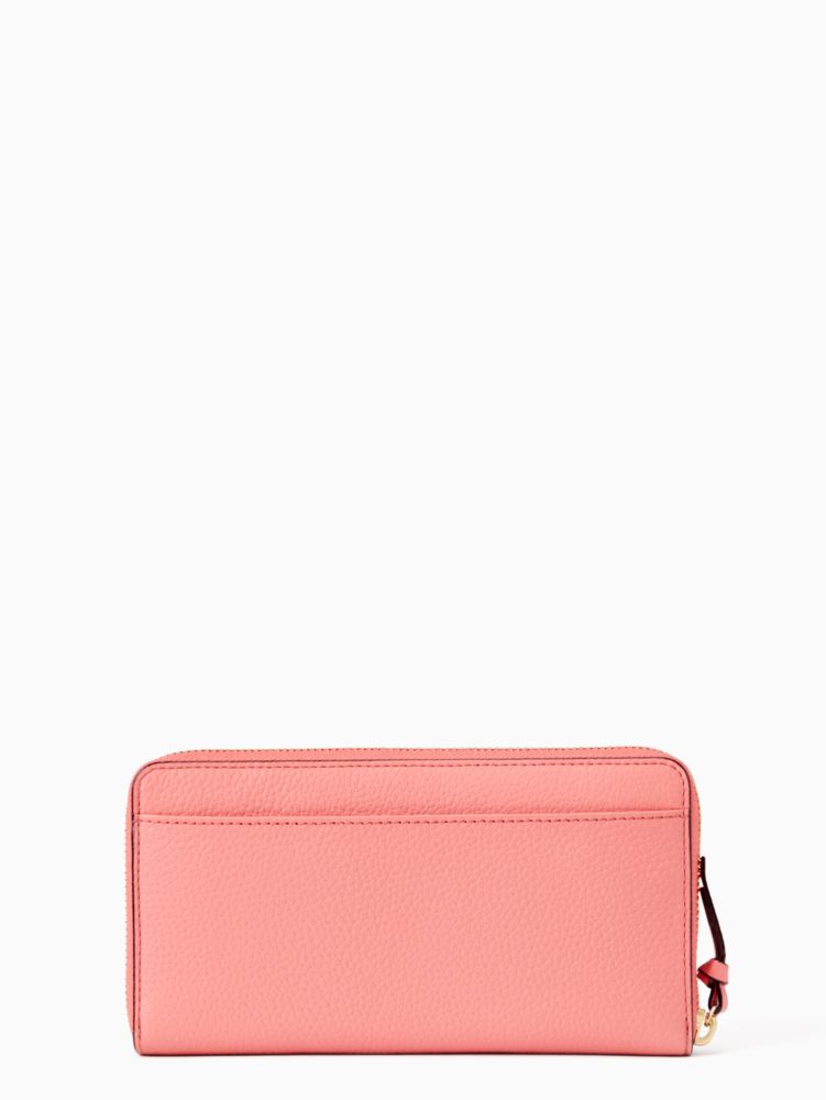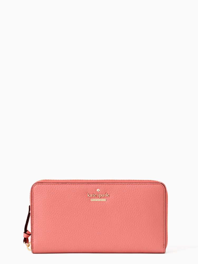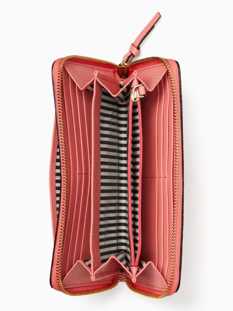 there's a lot to love about our lacey wallet--12 card slots, 2 billfold compartments and one middle zip pocket, to be exact. the finishing touch? an outside slide pocket for holding metro cards, to-do lists or tickets close at hand.