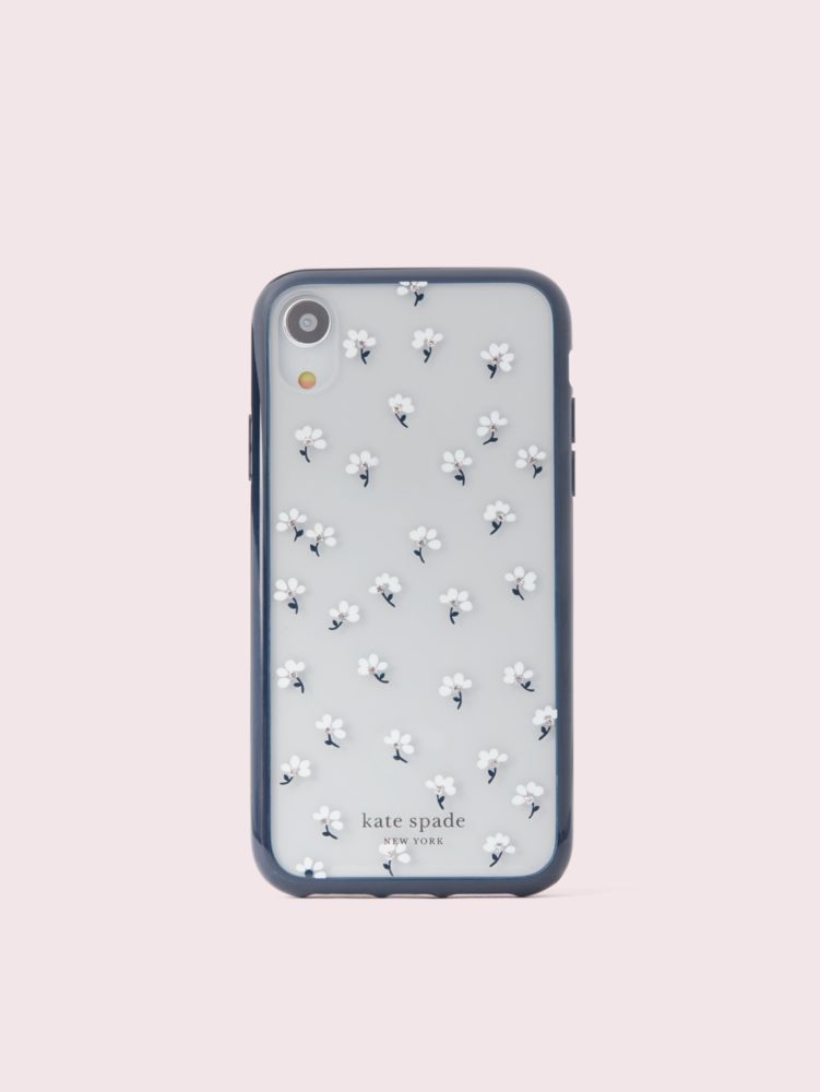 we love that this clear resin phone case adds a layer of protection against drops and scratches. we also love how the navy border punctuates the daisy print so beautifully. make sure to zoom in closer on each bloom. we embellished the centers with sparkly silver jewels.