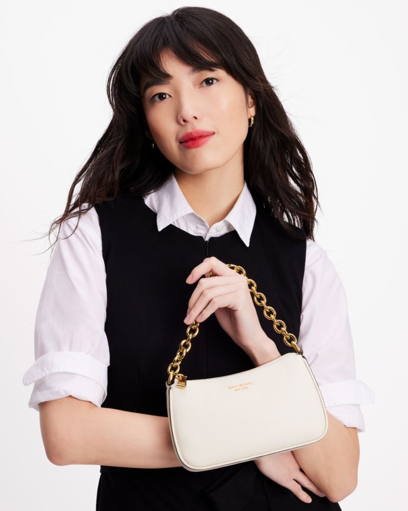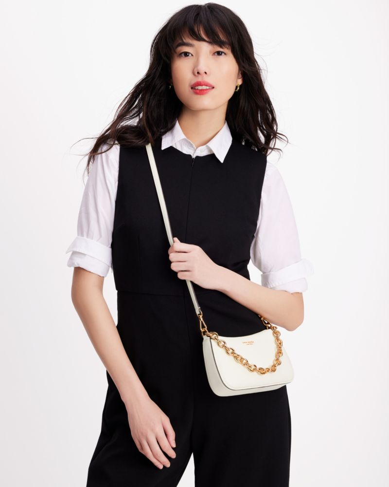 Who doesn't love a bag with options? The Jolie convertible crossbody can be worn two ways: with the cool crossbody strap or the glimmering shoulder chain.