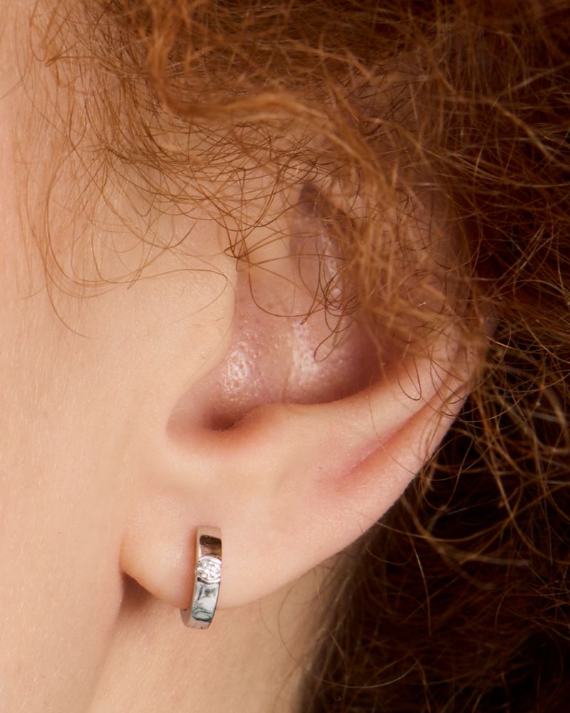 Introducing kate spade Fine, our new collection of gold vermeil and sterling silver jewelry. These special pieces were designed to celebrate both milestone achievements and the little joys in everyday life. These huggies are made from sterling silver and showcases bezel-set lab-grown diamonds for a hint of sparkle.