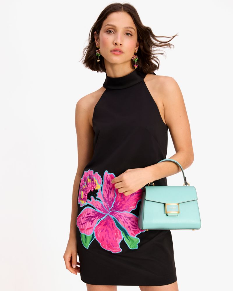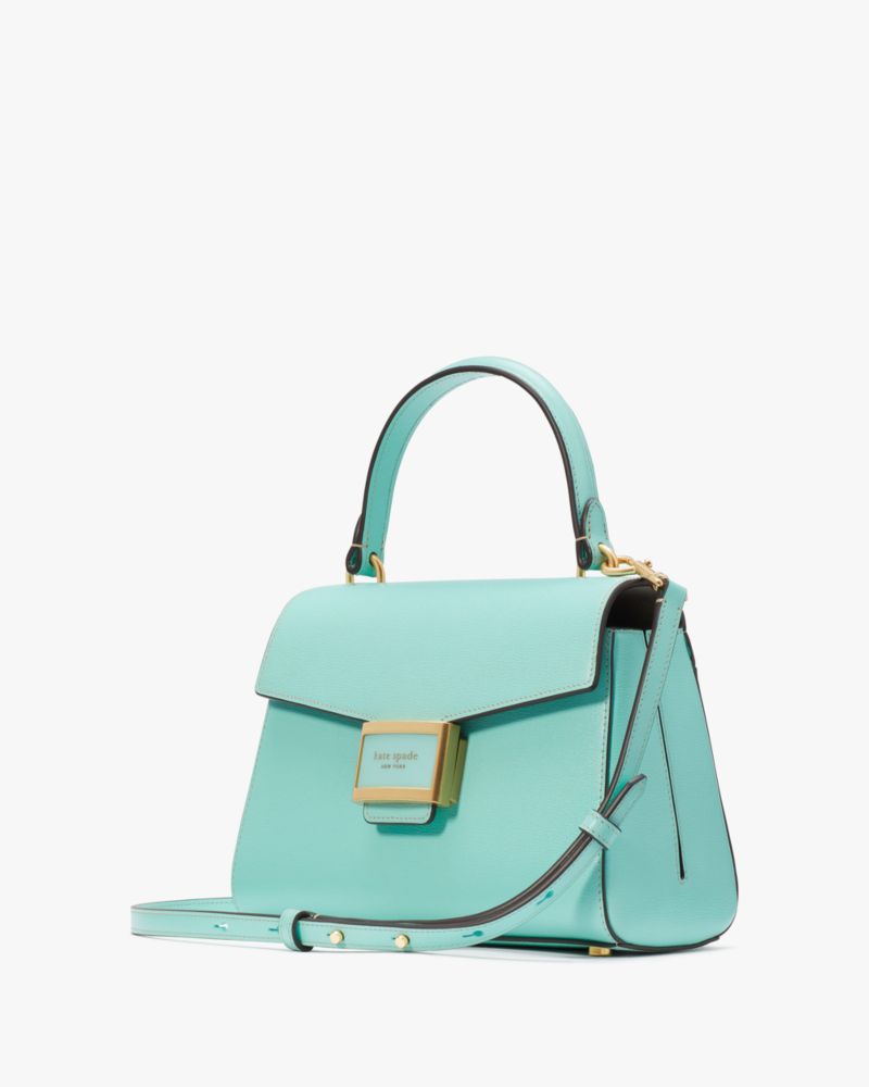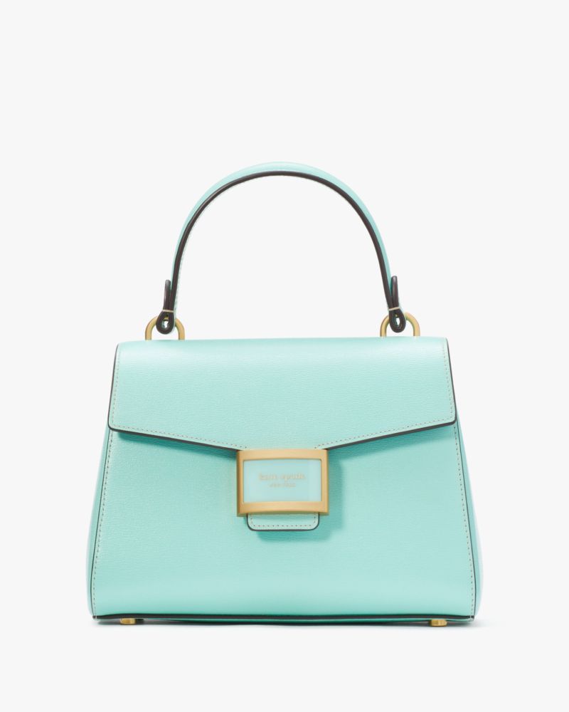 Kate Spade,Katy Small Top-handle Bag,Leather,Satchel,Logo,Metal,Adjustable,Gold Metal,Day Party,Turquoise