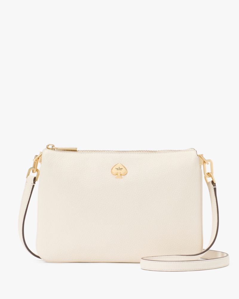 Kate Spade,Kayla Small Triple Compartment Crossbody,Calfskin Leather,Crossbody,Logo,Metal,Gold Metal,Casual,Cream