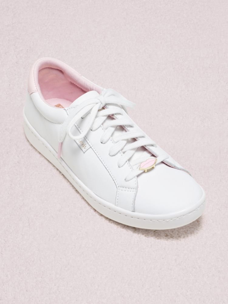 our ace sneakers are designed with a classic lace-up silhouette, so they go with everything from a skirt and tee to your favorite pair of jeans. but you know us, we'd never keep things plain. so we topped these off with intentionally mismatched embellishments: lips and a heart (because we love these that much).