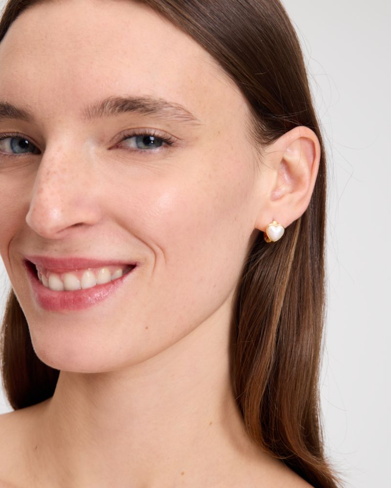 Everything's better with a little shine. Bling it on with our heart huggies, adorned with cubic zirconia and acrylic pearl.