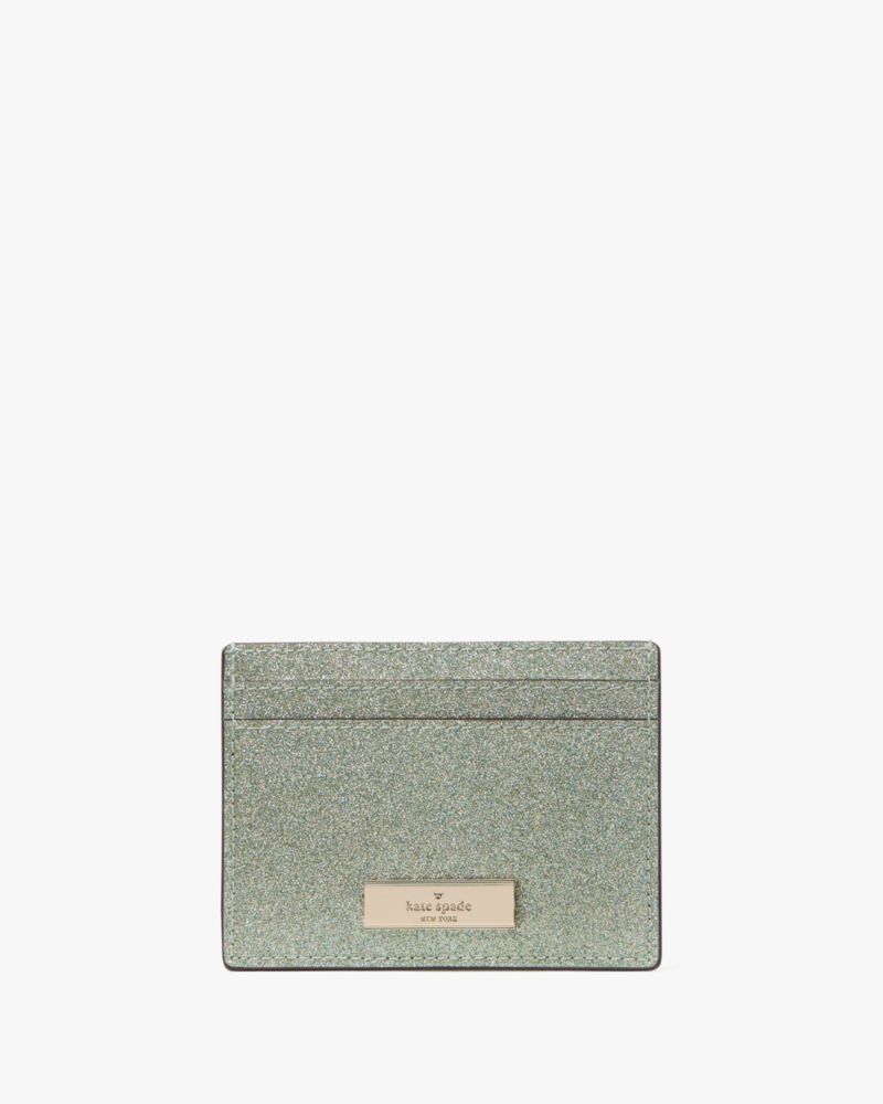 Kate Spade,Kenzie Boxed Glitter Small Cardholder,Card Case,PVC,Metal,Embellished,Logo,Glitter,Casual,Gray