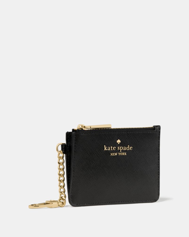 Kate Spade,Key Ring Card Holder,Leather,Coin,Card Case,Logo,Key Ring,Gold Metal,Work,Black