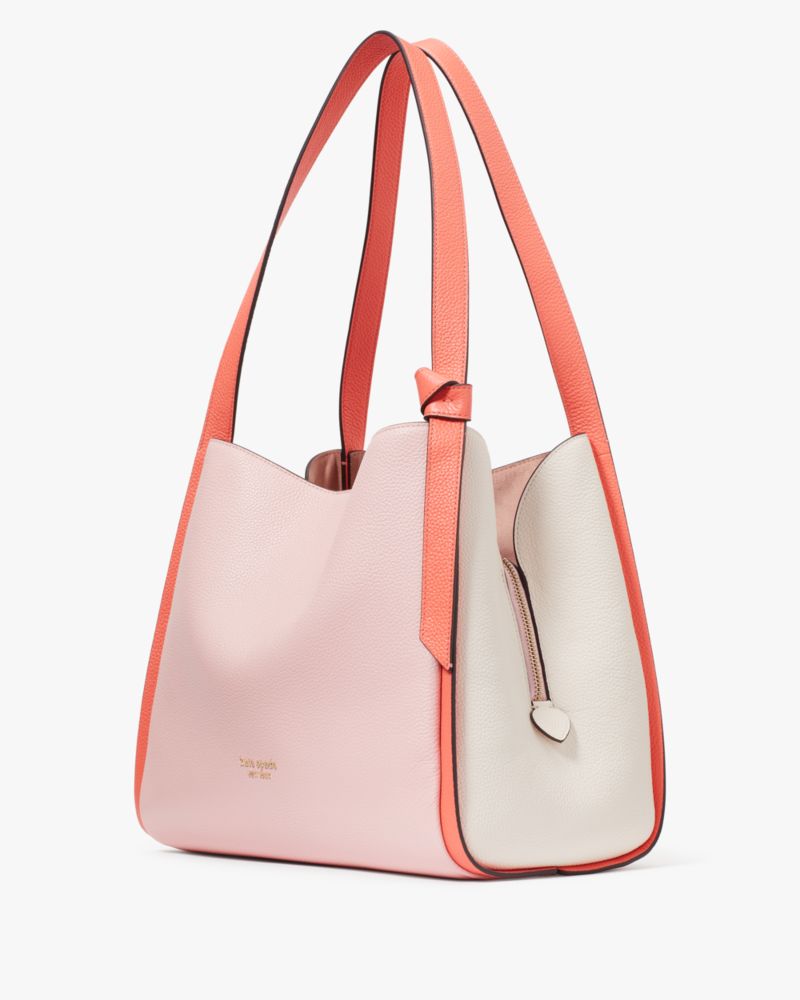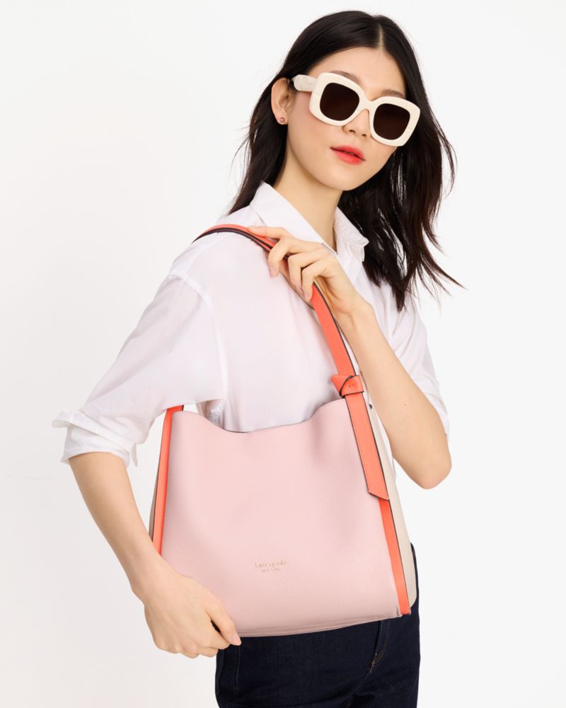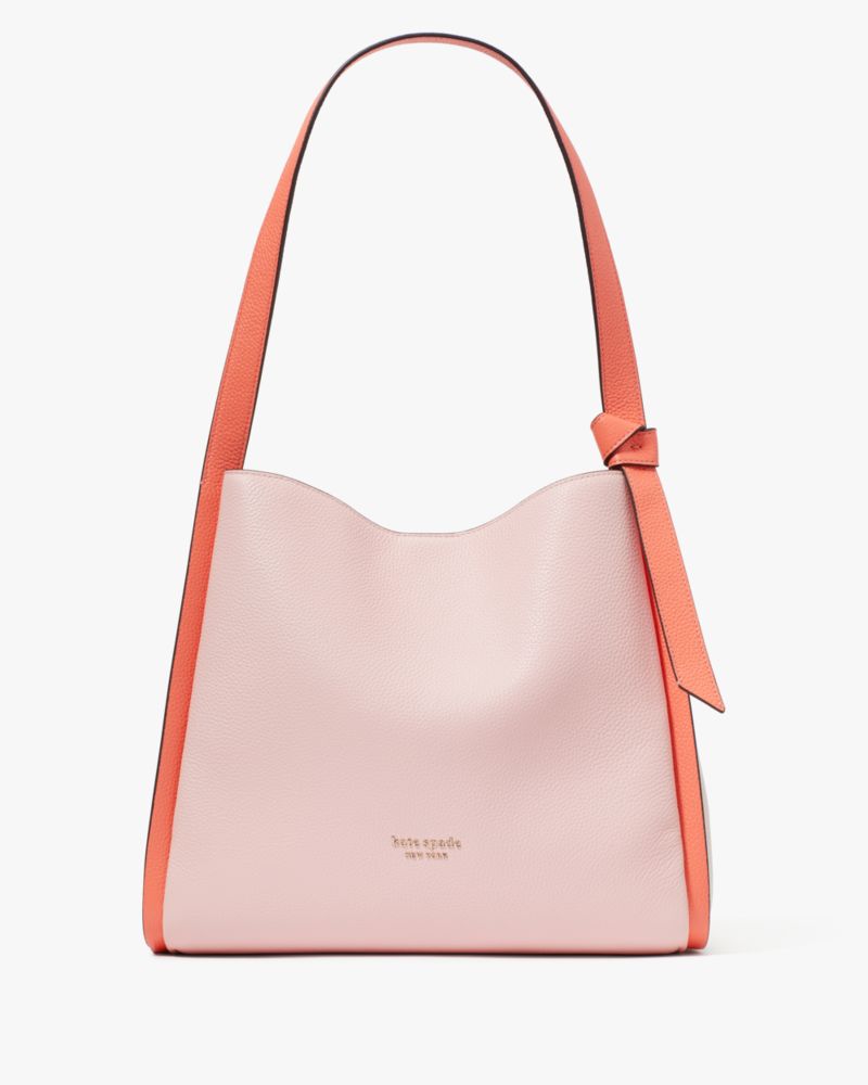 when you need a bag that ties it all together...but a little less structured. reach for our soft pebbled leather knott shoulder bag for errand runs and coffee with the girls. we kept it true to the original satchel of the same name with a cinch knotted side and plenty of pockets to organize all your things.