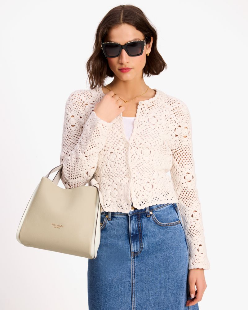 Kate Spade,Knott Colorblocked Medium Crossbody Tote,Leather,Hobo,Logo,Metal,Knot,Casual,