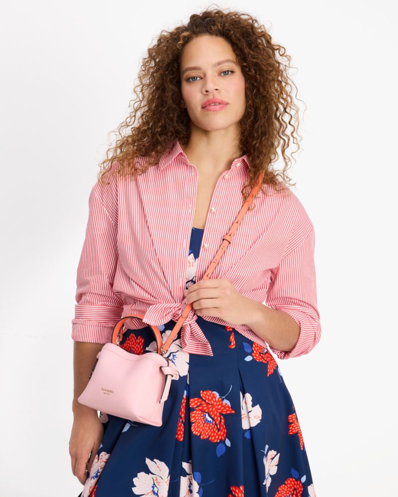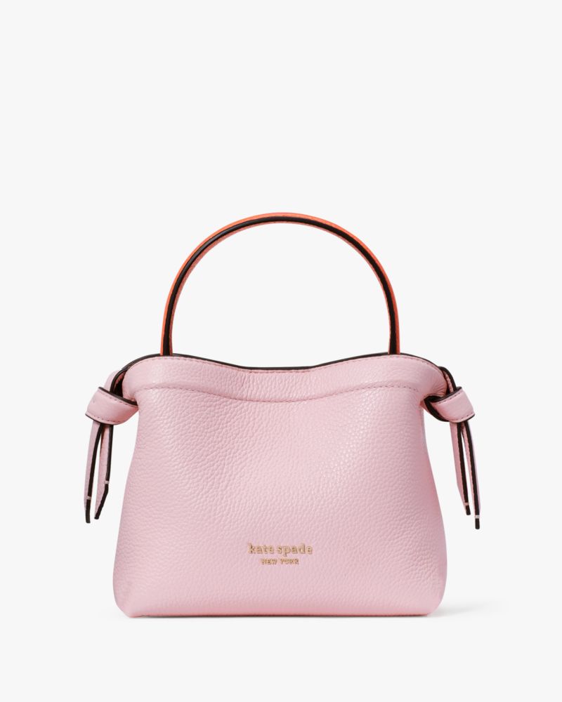 Our Knott crossbody tote is here in a compact size. Made from colorblocked pebbled leather, this style features an optional crossbody strap so you can easily sling it over your shoulder when you find your hands full.