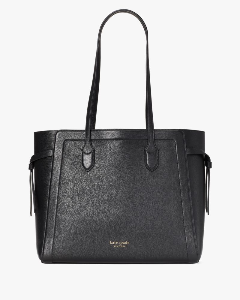meet our knott tote. you'll notice it has clever cinched knotted sides, but that's not the only reason it earned its name. a snap-tab slip pocket organizes all the little things. there's room enough to fit your essentials, even a 13" laptop. it's the bag that ties it all together.