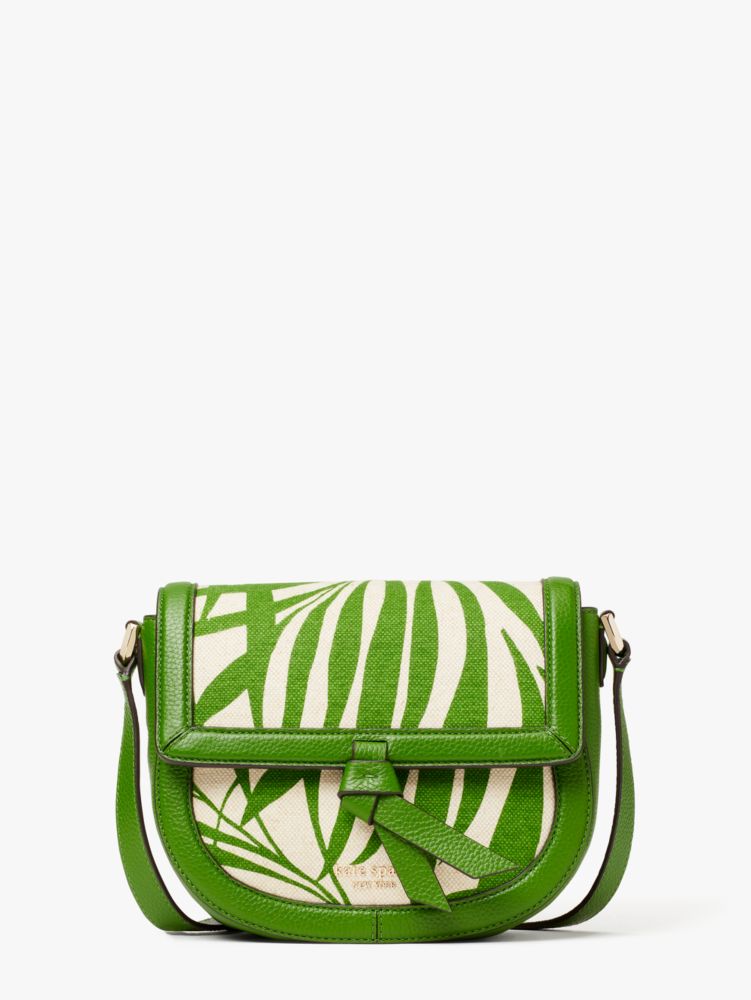 knott, but make it a crossbody. we made it in palm print canvas for a tropical feel, and added multiple pockets to organize all your essentials. it's the bag that ties it all together.